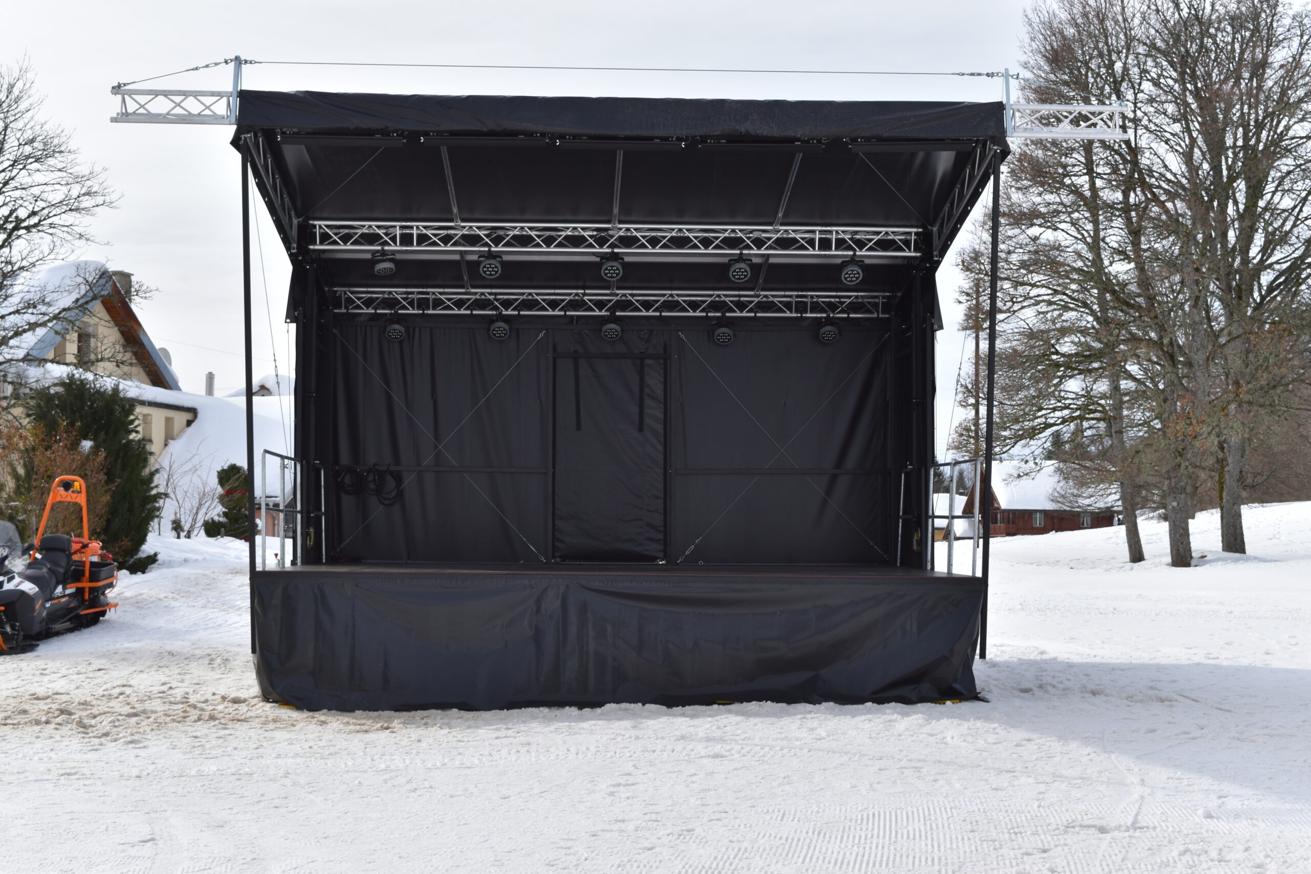La principale caractéristique de la SmartStage 30 réside dans sa mobilité. Montée sur une remorque, elle peut être transportée facilement d’un lieu à un autre, permettant une installation rapide sur des sites variés, tels que des places publiques, des parcs ou encore des salles de spectacles. Une fois arrivée à destination, elle peut être déployée en moins d’une heure, grâce à un système de montage rapide et efficace. Ce gain de temps considérable est un atout majeur pour les événements nécessitant une organisation flexible ou ceux soumis à des contraintes de dernière minute.